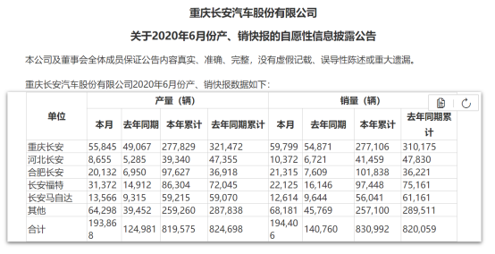 根据中汽协数据,今年上半年国内汽车市场销量同比下降16.9%。而根据公司产销快报,长安汽车6月单月实现销量19.40万辆,同比增长38%,显著超越行业。1-6月累计销量83.1万辆,同比增长1.3%。