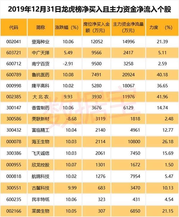 速看!龙虎榜净买入且主力资金净流入个股一览