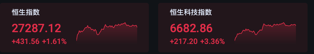 截至当日收盘时,恒生指数上涨1.61%,达到27287.12点;恒生国企指数上涨1.92%,达到9739.73点,市场交投活跃度较节前显著提升;恒生科技指数表现尤为强劲,全天上涨3.36%,报收于6682.86点,创下自2021年11月以来的近4年新高。