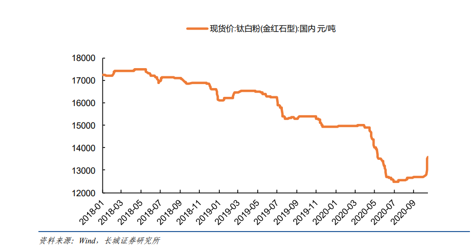 1)十月双节假期后,受需求端刺激,钛白粉企业相继发布上涨调价函,上游钛精矿价格亦有上调,据百川资讯,四川攀枝花、云南等钛精矿主产区矿企集体上调出厂价50-100元/吨。其中46品位10矿价格创出2017年11月初以来近三年新高。