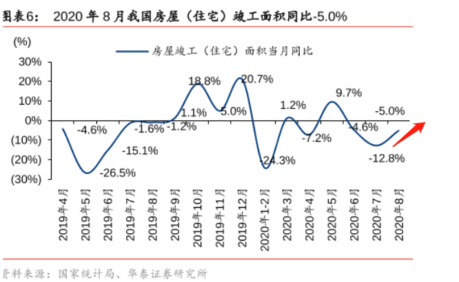 国内钛白粉下游消费中,涂料行业是钛白粉主要需求领域。2019 年全年国内房屋竣工面积为 95941.53 万平方米,同比上升 2.6%,2020年受疫情影响房屋竣工面积同比大幅下滑,截止8月同比快速收窄,预计四季度房屋竣工面积有望继续攀升;