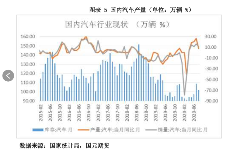 汽车在生产过程中需要喷漆,汽车使用的油漆中需要添加钛白粉。2020 年二季度开始国内汽车产销逐步回升,短期积聚库存产量有所下滑,但随着车市持续回暖,四季度产量仍有上升空间。