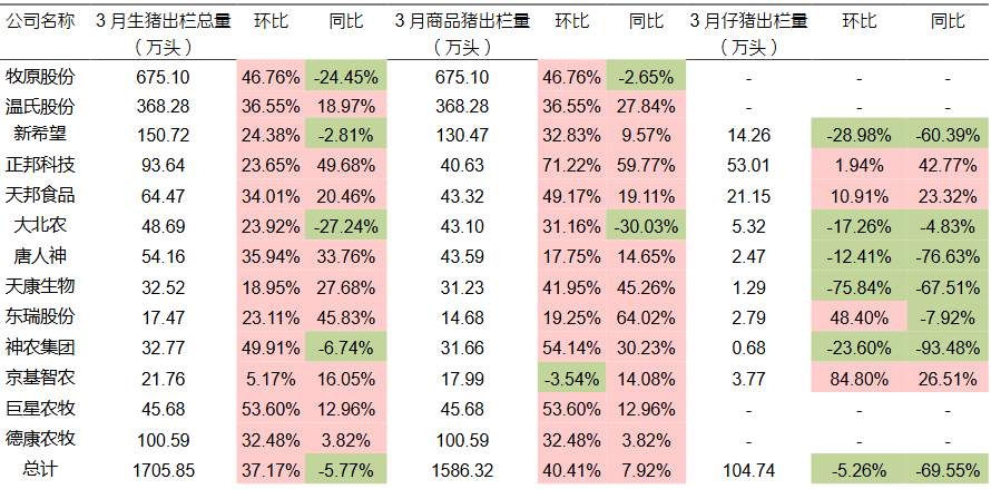 图:2026 年 3 月上市企业生猪出栏量显著增长 |