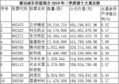 季报显示,睿远成长价值混合基金二季度重点配置了立讯精密、科伦药业、东方雨虹等优质白马股,其中,立讯精密、隆基股份、万华化学等个股一直是傅鹏博担任基金经理期间长期持有的个股。