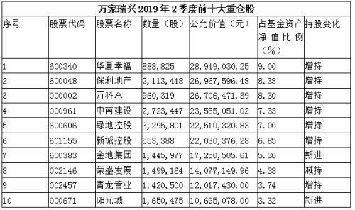 万家瑞兴前十大重仓股变化不大,新进金地集团、阳光成两只个股。