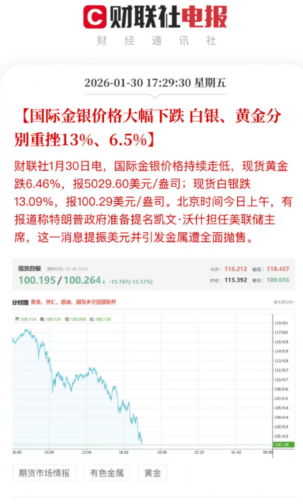 一个是,一月份以来,黄金、白银涨幅巨大,吸引了大量投机资金入场,浮盈盘规模大,有落袋止盈的需求,一旦发生回调,就容易引起踩踏。而金银又是其他大宗商品定价之锚,也会跟着一起跌。