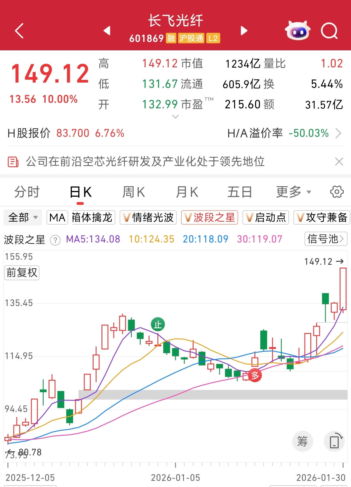 据波段之星监控,今日大涨的长飞光纤,在12月30日出现了止盈信号,在1月16号出现了看多进场信号。