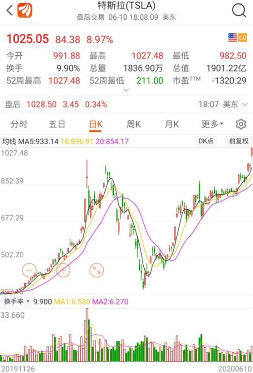 特斯拉股价首破1000美元,超越丰田成为全球市值最高车企