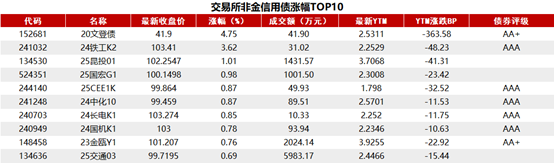 交易所债券市场收盘。据Choice 数据统计显示,今日交易所市场非金信用债涨幅排行前五的分别是:20文登债、24铁工K2、25昆投01、25国宏G1、25CEE1K。具体如下: