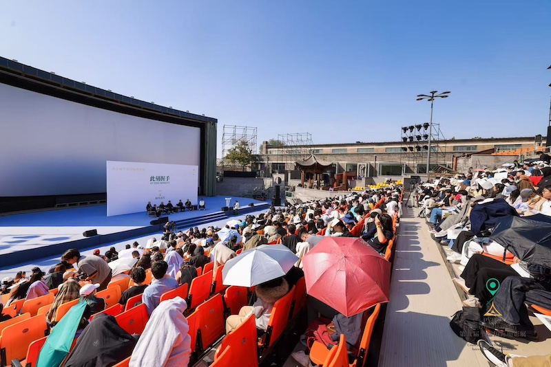 这场对谈的热度堪比热门影片,活动预约开放后便迅速爆满。对谈当天,平遥古城日光强烈,1500人的露天剧场“站台”挤满了渴望与电影人交流的观众。有影迷调侃,这也是一种“日掛中天”。