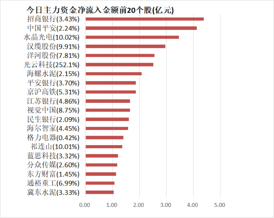 沪深300今日主力资金净流出29.53亿元,创业板净流出23.02亿元,中小板净流出50.64亿元。