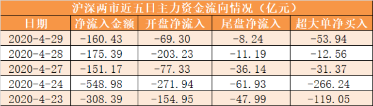 今日沪深两市主力资金开盘净流出69.3亿元,尾盘净流出8.24亿元,两市全天资金净流出160.43亿元。