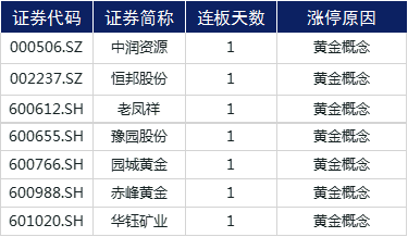 国际金价上涨直接带动了A股的贵金属板块,中润资源(000506.SZ)、恒邦股份(002237.SZ)、老凤祥(600612.SH)、豫园股份(600655.SH)、园城黄金(600766.SH)、赤峰黄金(600988.SH)、华钰矿业(601020.SH)涨停。