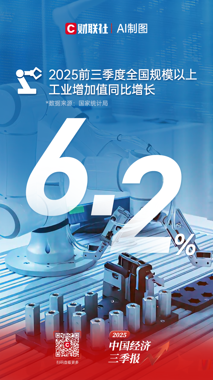 工业增加值:前三季度,规模以上工业增加值同比增长6.2%。其中,9月份同比实际增长6.5%。