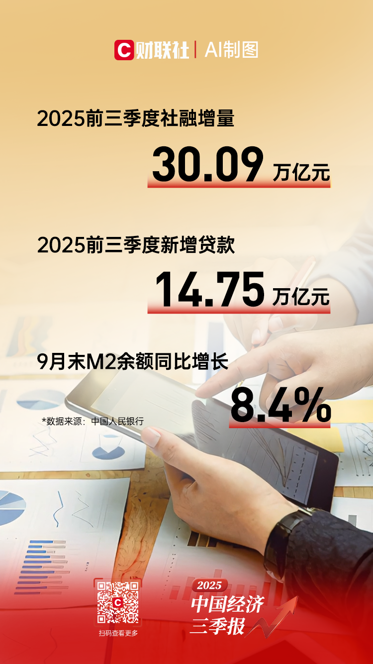 社融:初步统计,前三季度,社会融资规模增量累计为30.09万亿元,比上年同期多4.42万亿元。