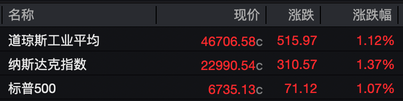 大型科技股普涨,苹果涨近4%,创历史新高;Meta涨超2%,特斯拉、谷歌、亚马逊涨逾1%,微软小幅上涨;英伟达小幅下跌。