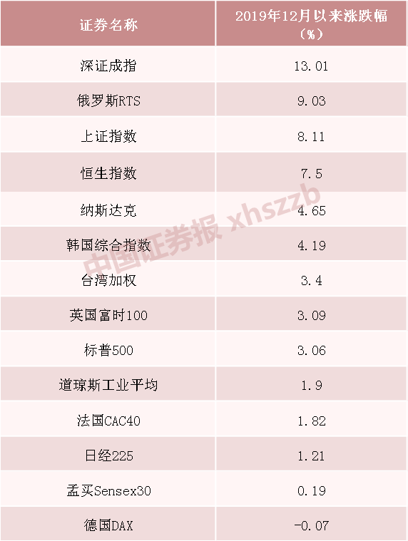 2019年12月以来,深证成指和上证指数的走势就一直在领跑全球,尤其是深证成指更是高居全球主要股指涨幅榜首。上证指数也是一路势如破竹,并直接上攻至3100点的阶段高点。
