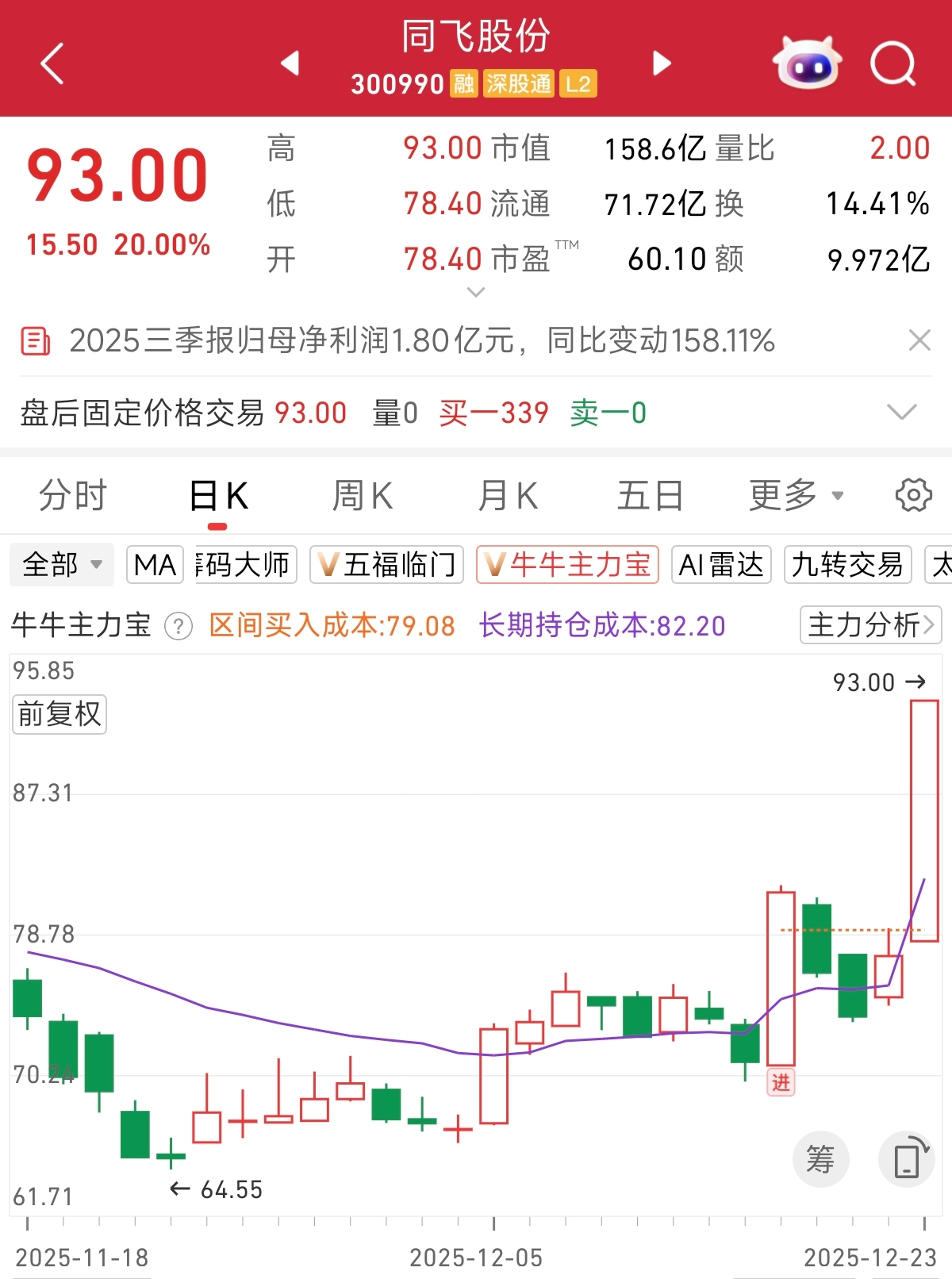 根据“主力宝”监控,今日大涨20cm的同飞股份,主力在12月17日进场,迄今已经上涨30%。