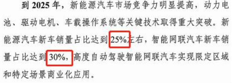 意见稿提出,到2025年,新能源汽车市场竞争力明显提高,动力电池、驱动电机、车载操作系统等关键技术取得重大突破,新能源汽车新车销量占比达到25%左右。