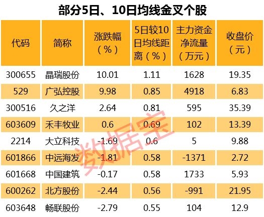 最新数据显示,有21只A股的5日均线主动上穿10日均线,其中晶瑞股份、广弘控股、久之洋等个股的5日均线较10日均线距离最大,分别达1.11%、0.85%、0.81%。