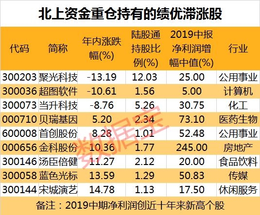 北上资金重仓持有9只滞涨股,竟有一股已被持仓12%