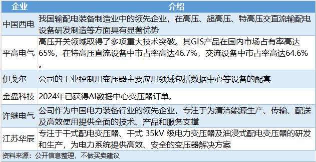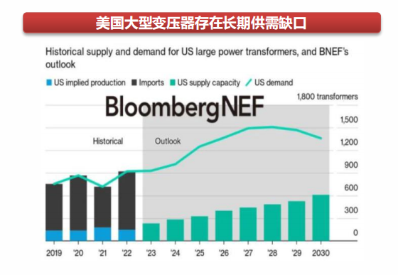 国内新能源快速发展,发电结构的改变需要升级和改造电网。国外AI快速发展,对电的需求量大,也需要改造。以美国为代表的发达经济体中,超过 50%的电网基础设施使用年限时,其中一部分设备甚至已经运行了50年以上,而变压器的寿命一般为30-40年,我国出口企业迎来机遇。