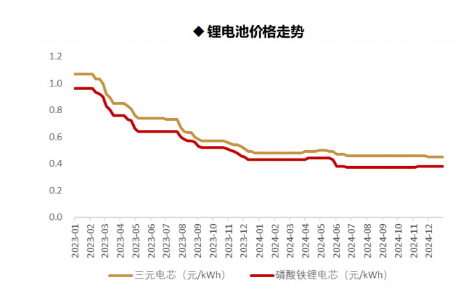 供给方面,供给充足,竞争加剧,锂电池价格目前处于筑底阶段。由于上游锂的价格已经接近低点,全行业亏损,后续锂电池价格下跌的空间有限。