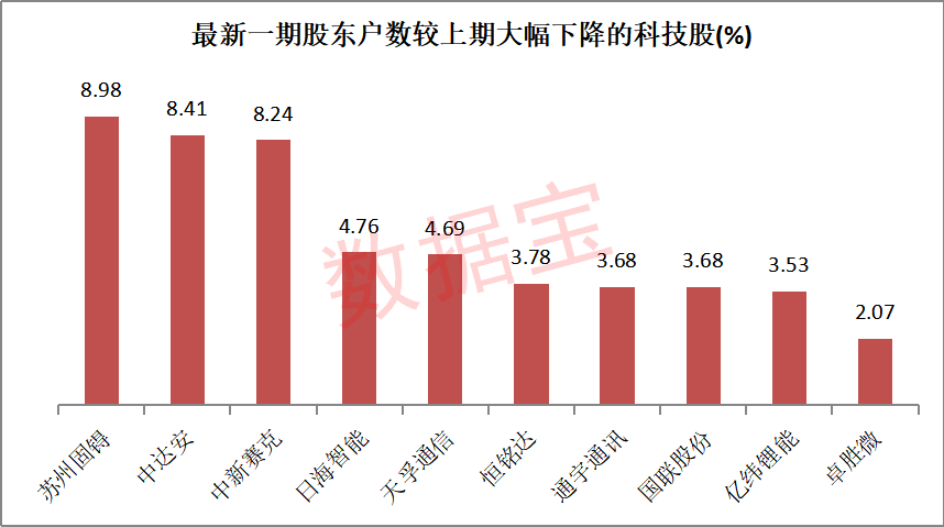 还有哪些科技股筹码连续集中?数据宝对OLED、华为、5G、国产软件、国产操作系统、等科技细分领域进行统计,26股最近最新股东户数(12月10日)较上一期(11月29日)有所下降。