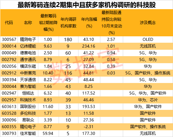 调研机构超5家,筹码连续2期集中且11月以来获北上资金加仓,仅6只科技股复合条件。