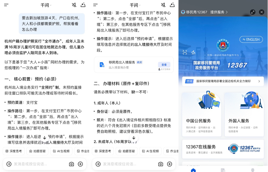此外,千问App还接入了支付宝的政务服务,用户可查询签证、户口、公积金等50项民生服务事项。