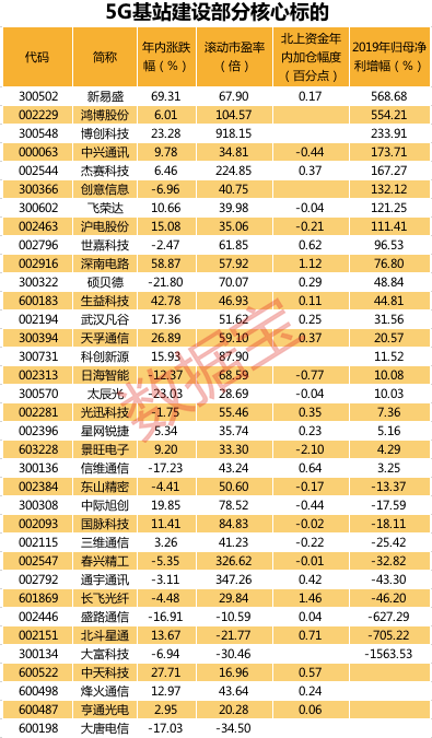上述35只5G建设核心股中,31股已公布2019年业绩增幅,21股归母净利增长,其中8股归母净利实现翻番以上。