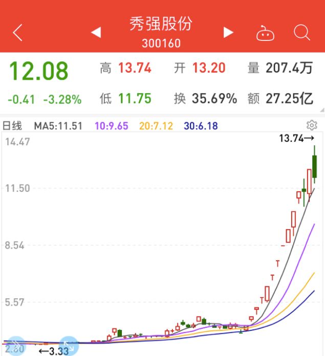 秀强股份暴涨神话今日终结。该股今日盘中几度涨停,午后大幅回落,尾盘收跌3.28%。盘后龙虎榜数据显示,秀强股份今日遭龙虎榜资金净卖出0.31亿元。