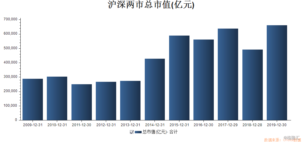 东方财富Choice数据显示,截至12月30日,沪深两市总市值为65.55万亿元,较2018年年末的48.63万亿元增加了16.92万亿元。