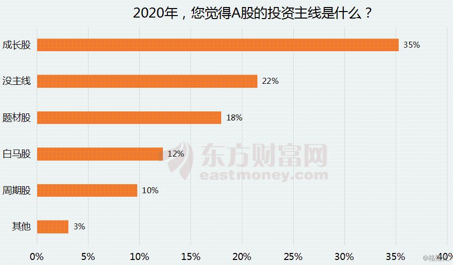 股市风格方面,股民又是怎么看的呢?调查结果显示,超三成股民认为2020年股市投资风格会切换到成长股,只有12.3%的股民认为会以白马股为主导,高达21.5%的股民认为暂时还说不清。