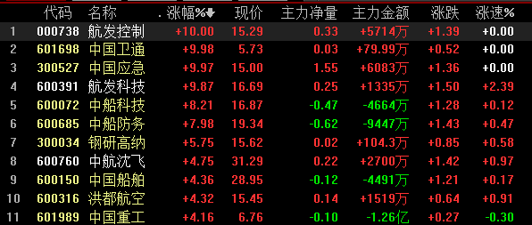 此后国防军工板块集体拉升,航发控制直线拉板。