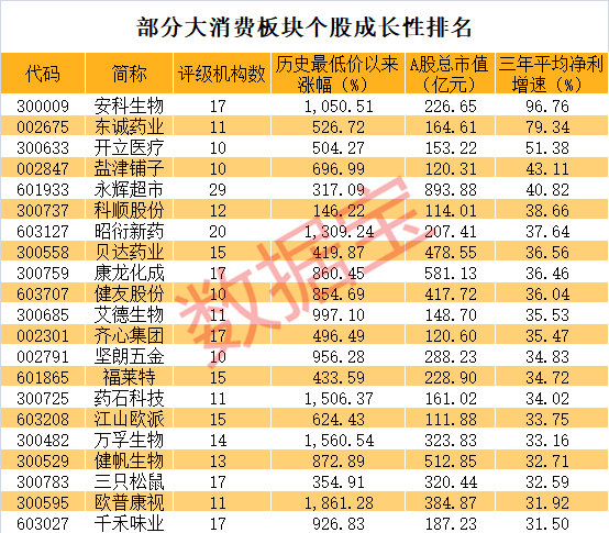 这是一批长牛股名单,大消费成为集中营。包括医药行业的云南白药、长春高新、恒瑞医药等7只个股,食品饮料行业的泸州老窖、贵州茅台、伊利股份等5只个股,以及格力电器、海尔智家、老凤祥等消费类股票。