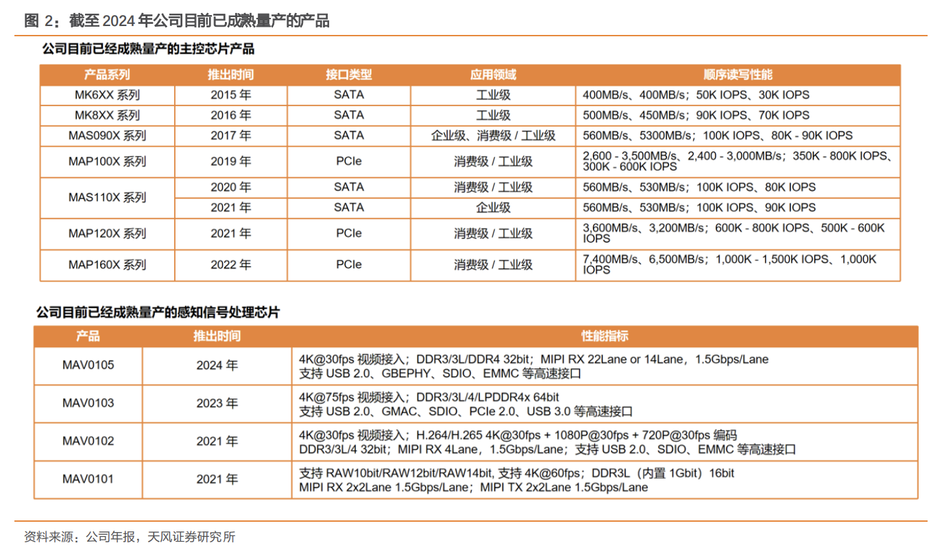 主控芯片核心产品出货量全球领先。在SSD主控领域,公司已实现从SATA到PCIe5.0的全协议覆盖,构建了消费级、企业级和工业级的全场景产品矩阵,技术性能对标国际龙头,部分指标甚至超越竞品。