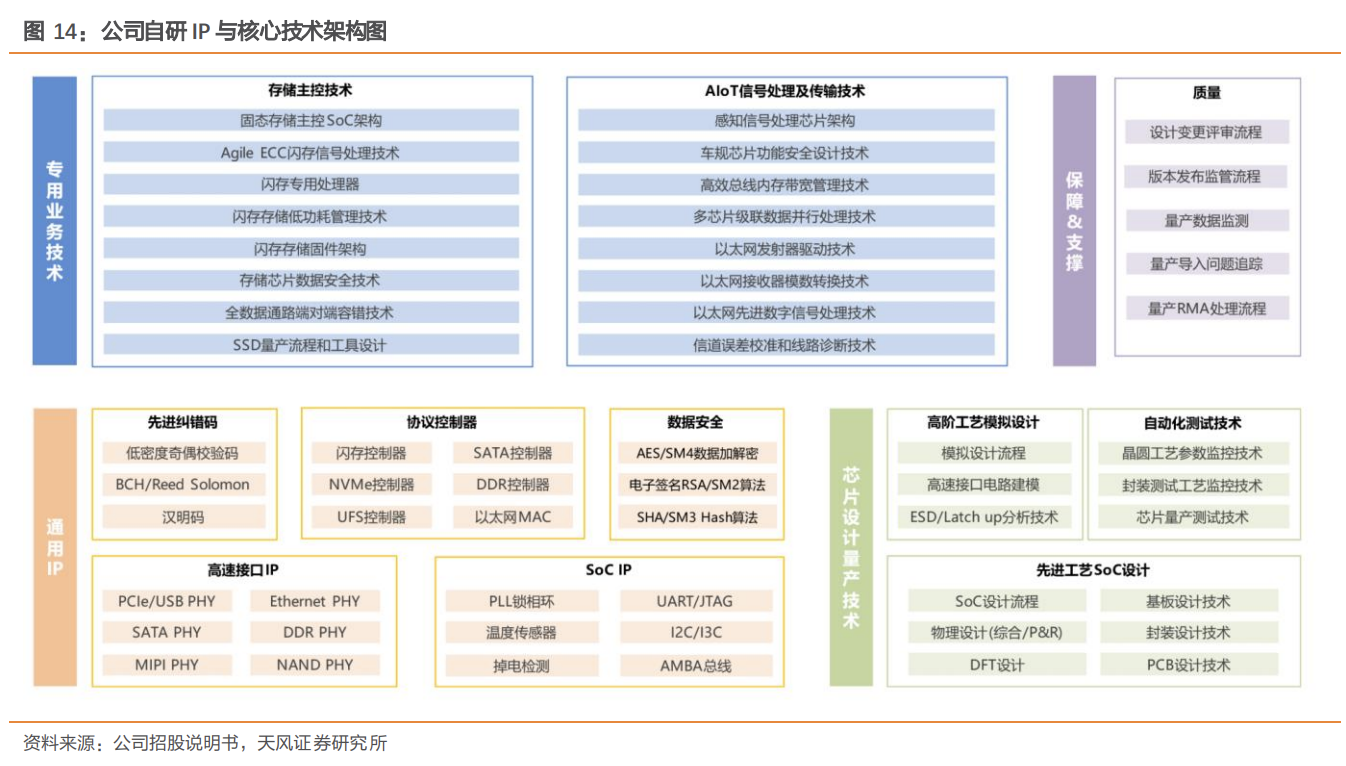 公司主要产品为数据存储主控芯片和AIoT信号处理及传输芯片,并提供相关的技术服务。公司数据存储主控芯片主要包括固态硬盘(SSD)主控芯片和嵌入式存储主控芯片,可应用于消费电子、服务器、工业控制等领域。AIoT芯片是AIoT终端设备的核心组成部分,搭载于AIoT终端设备内,按照功能可划分为传感器芯片、感知信号处理芯片以及有线通信芯片等,分别实现终端设备的信号感知、处理和信息传输功能。AIoT信号处理及传输芯片可应用于交通出行、工业物联网、智慧办公等领域。