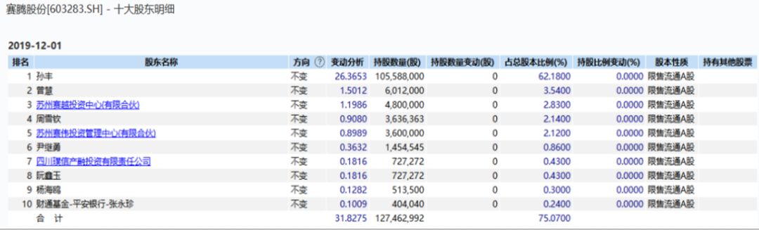 在持股方面,孙丰目前为公司的控股股东,持股比例达到62.18%;曾慧则为第二大股东,但仅持股3.54%,二人此前所持的首发股仍处于限售状态,将于今年12月底解禁。