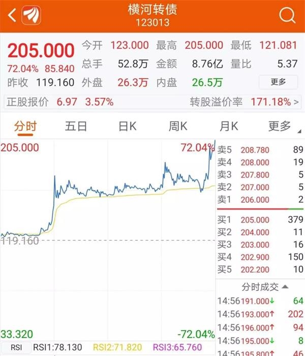其以横河模具为例,正股横河模具仅上涨3.57%,全天成交额2846万;但转债暴涨72.04%,成交额8.76亿,换手率达到23倍。