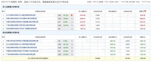 该股票当天登上龙虎榜,数据显示,有4个席位当天出现交易对倒。买入榜第一的上海游资长江证券上海东明路营业部,买入3424.98万元,卖出3480.19万元。