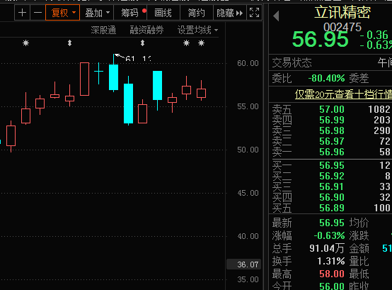 在上述消息影响下,立讯精密早盘低开逾2%,但截至午间收盘,跌幅收窄至0.63%。