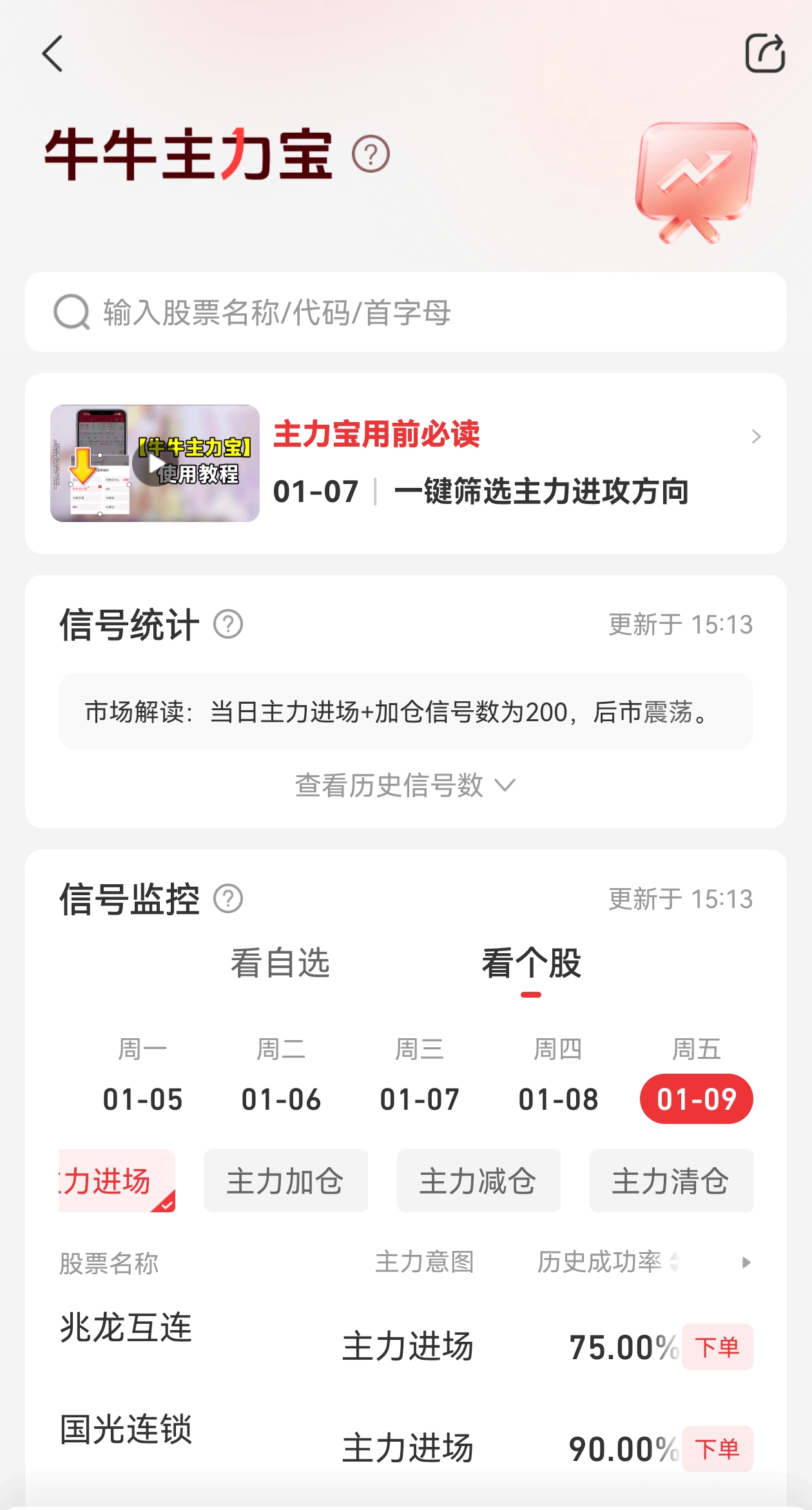 主力悄悄建仓?您的自选股有戏吗?“牛牛主力宝”来帮您,一键筛选主力进攻方向,查看主力买卖、加仓、减仓个股。跟上主力,让投资更简单!点击查看详情>>