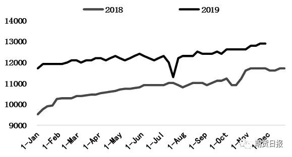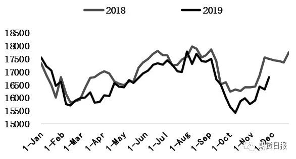 美国市场需求今年也是相对悲观,美国炼油输入需求时隔9年之后再一次出现年度同比下滑。截至目前,美国原油需求年度平均下滑37.6万桶/天,为10年来的最差表现。毫无疑问,随着特朗普的一意孤行以及全球经济下行压力巨大,使得原油市场的需求受到了很大的影响,美国市场自然不能独善其身。从库存的表现上也能够反映出美国市场今年供大于求的严重性,今年美国原油库存水平一直高于去年,库存的高企阻碍了市场上行的步伐。