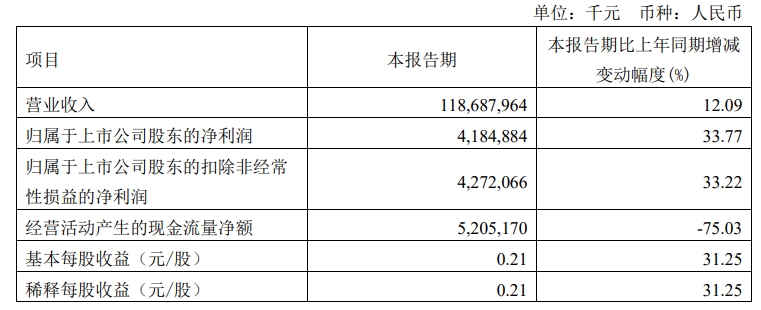 4月29日晚,工业富联披露2024年第一季度报告,一季度公司实现营业收入1186.88亿元,同比增长12.09%;归属于上市公司股东的净利润41.85亿元,同比增长33.77%。