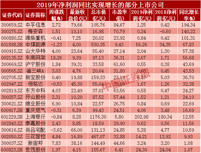 其余净利润同比增长率较高的公司还有潍柴重机、中煤能源、山大华特和东南网架,增速均在50%以上。