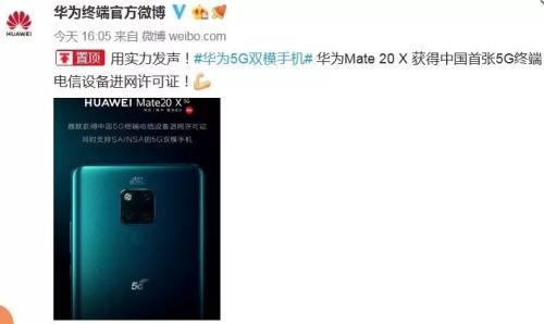 6月25日,华为Mate 20 X 获得首张5G终端电信设备进网许可证。进网许可证是通讯类产品的产品认证,获得该许可证才可以接入公用电信网使用和在国内销售。