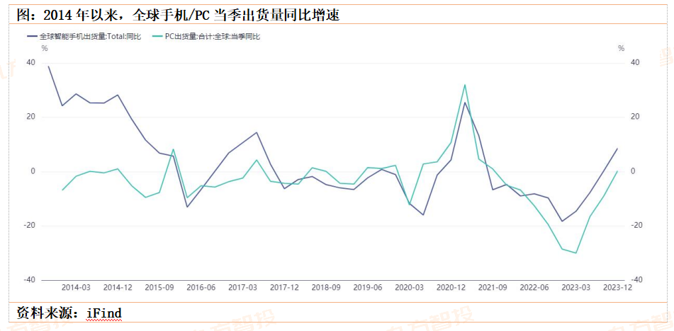 自去年三季度以来,受益于华为等国产手机出货量上升,全球手机市场开始触底反弹,在这种行业背景下,消费电子市场预期是向好的。因为消费电子市场是电子的终端品,所以消费电子复苏是整个电子市场的重要支撑点。