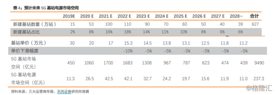 此外,5G时代滤波器的市场空间=基站数x单基站滤波器用量(即单基站通道数量)x单通道滤波器价格;而4G时代滤波器的市场空间=基站数x单基站使用滤波器的价格(天面数x单天面对应价值量)。