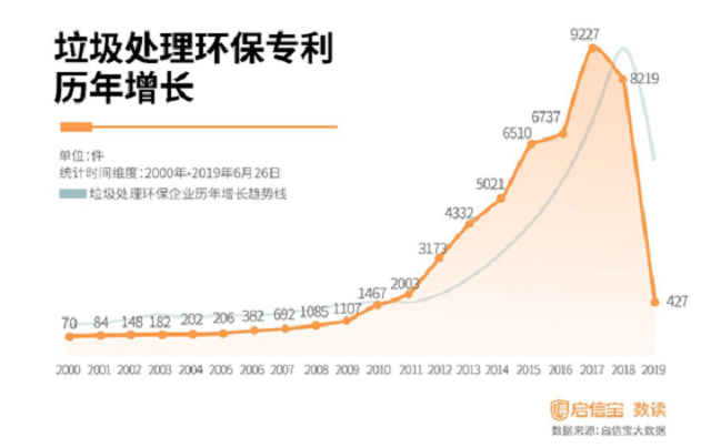同时,专利数量的增长趋势,与垃圾处理企业历年的增长曲线基本吻合。